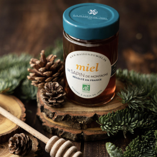 Issu des forêts de montagne, le miel de sapin est un miel de miellat réputé pour sa grande finesse. Sa couleur sombre, allant de l’ambre profond au brun, révèle une texture fluide et soyeuse.